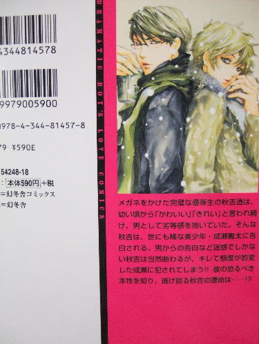 メガネをかけた完璧な優等生の秋吉透は、幼い頃から「かわいい」「きれい」と言われ続け、男として劣等感を抱いていた。そんな秋吉は、世にも稀な美少年・成瀬楓太に告白される。男からの告白など迷惑でしかない秋吉は当然断るが、キレて態度が豹変した成瀬に犯されてしまう!彼の恐るべき本性を知り、逃げ回る秋吉の運命は!?