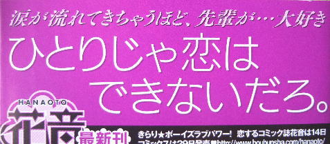 ところで、麻生先生の「それは一瞬の光ではなく」(88円で購入ってスゴイっすね)購入しました。同時に「隣人はドアを叩く」(同作者)も買いましたが・・・ワタクシ、隣人~のほうが好みでしたよ~エロも良かった!!!