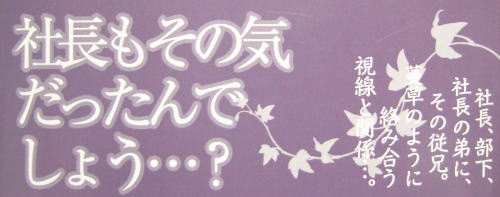 勤務中に怪我をして仕事にならない来島をしばらく居候させてくれることになったのは社長である義親の自宅。そこには夏休み中の高校生、弟の義行と親戚の隆晴がいて彼らの家庭教師をすることになった。接していくうちに来島の色香に迷い惹かれていく義行。告白しようと来島の部屋へ行くと引き戸から漏れる熱い吐息と激しい接吻の音、隙間から覗いてそこにいたのは…。